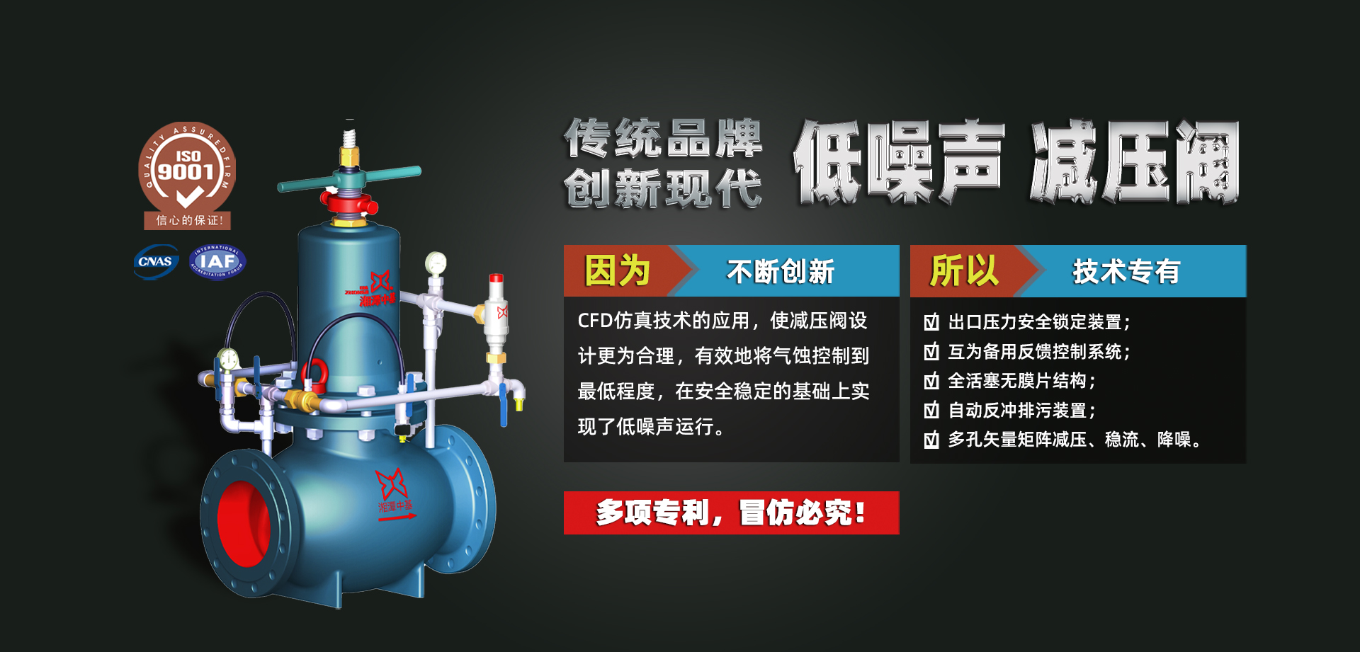 公司在長期發(fā)展中不斷吸收轉(zhuǎn)化國際先進(jìn)技術(shù),在控制、安全、抗噪和耐氣蝕等實際運行方面積累了豐富經(jīng)驗,擁有完全自主知識產(chǎn)權(quán),包括減壓閥、泄壓閥、開關(guān)閥、水泵控制閥在內(nèi)的ZJ系列。